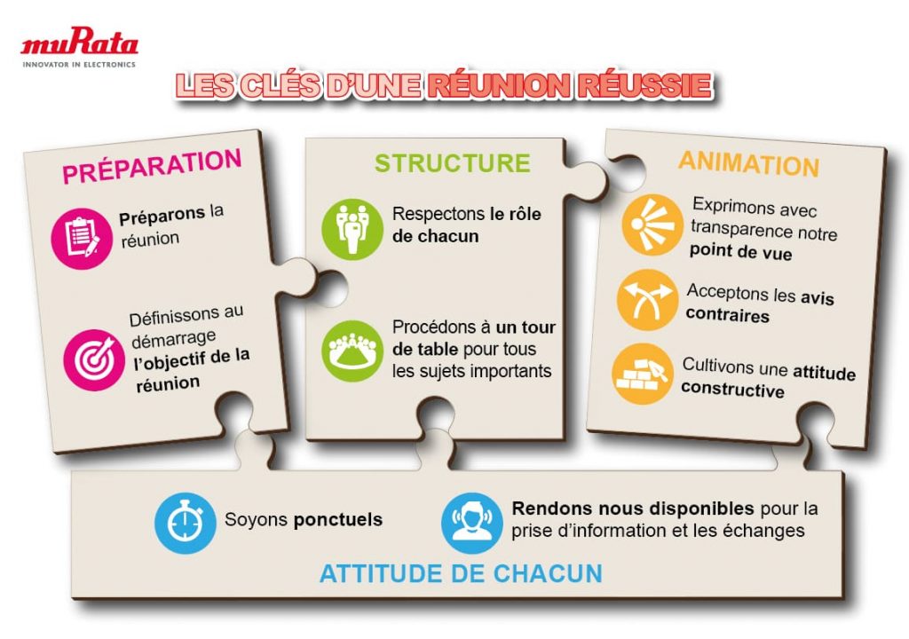 Cette charte sera affichée dans nos salles et déployée à l’ensemble des salariés à travers un guide rappelant les principes de base pour l’animateur ainsi que pour les participants d’une réunion.