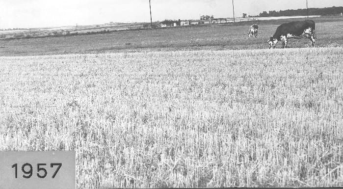 Essayez de vous imaginer : la rue de la Girafe n’est alors qu’un chemin de terre. Le périphérique n’existe évidemment pas encore. Pas de bouchons, peu de voitures. Autour, des champs, des vaches, la campagne. Au loin, vers le sud, les faubourgs de Caen. Nous sommes en 1955 et la ville a démarré sa reconstruction depuis quelques années seulement, se réinventant après les lourdes destructions provoquées par les bombardements de la fin de la guerre.