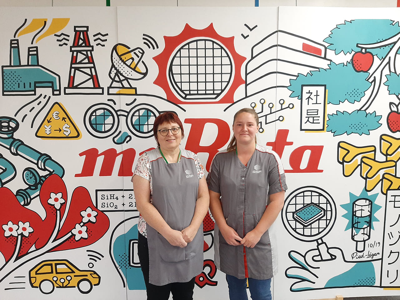 La propreté de nos locaux et plus particulièrement en salle blanche est indispensable pour le respect de nos normes. Gérée par la société GSF (prestataire de Dalkia), une équipe de trois personnes s’occupe au quotidien de cette lutte contre les poussières chez Murata Caen.