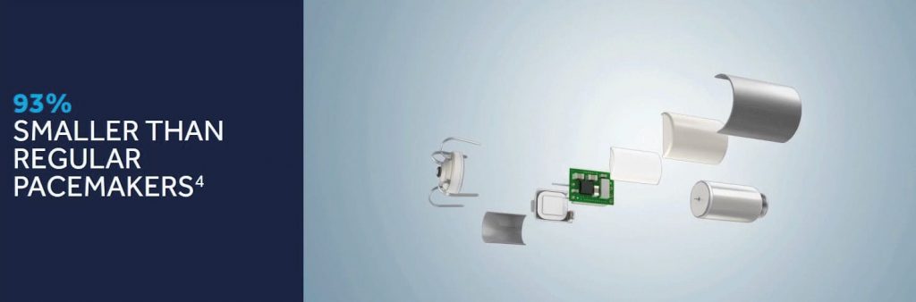 Un pacemaker sans sonde, implanté directement dans le cœur, contre le ventricule droit. Son implantation se fait sous anesthésie locale, par l’artère fémorale, depuis une incision faite sur la cuisse du patient.