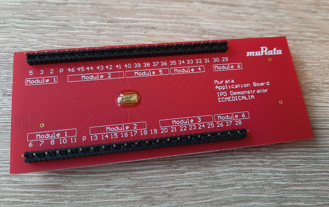 • Une carte électronique sur laquelle est reporté et connecté, par wirebonding, un démonstrateur IPD intégrant une multitude de fonctions régulièrement utilisées dans les applications médicales.