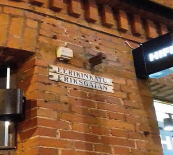 « Le début de notre voyage s’annonce plutôt bien : les astres semblent bien alignés puisque notre RER s’appelle ERIC et la rue de notre Hôtel EERIKINKATU dans sa version finnoise et ERIKSGATAN dans sa version suédoise puisqu’il y a 2 langues officielles en Finlande.