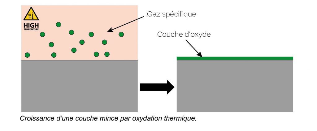 Comme les différents oxydes, sur des épaisseurs précises. C’est bien une croissance et non un dépôt car le gaz réagit avec le silicium en surface pour le transformer en oxyde de silicium.