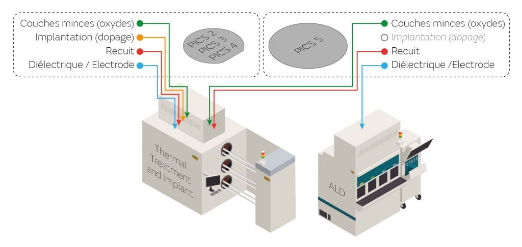 Alors que les technologies PICS 2-3-4 font appel à des procédés de traitement thermique de nombreuses fois durant le processus de fabrication, le PICS 5 n’y fait appel qu’en début et fin de fabrication pour respectivement une couche mince d’oxyde et un recuit.