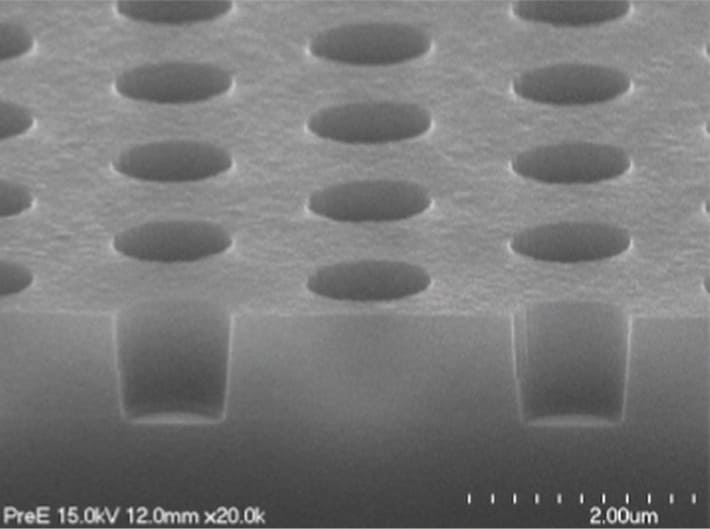 Cette étape consiste à retirer de la matière dans l’épaisseur du wafer en Silicium pour réaliser la structure en 3 dimensions propre à nos technologies (les Tripodes pour les technologies PICS2, 3 et 4).