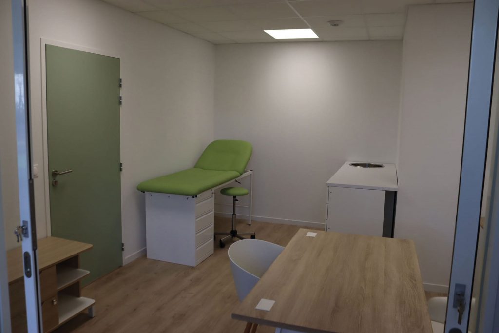 • Un bureau pour le médecin, qui sera occasionnellement présent pour réaliser les visites médicales périodiques. Des sessions seront organisées pour qu’il puisse recevoir plusieurs salariés sur ses quelques jours de présences(1).